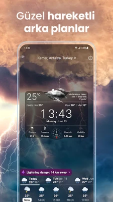 Hava durumunu kontrol etmek için uygulamayı açmanıza bile gerek kalmadan, ana ekranınıza kusursuzca entegre olan görsel açıdan çekici widget'lar sayesinde en güncel bilgilere anında göz atabilirsiniz. İster kapsamlı bir widget ile tüm detaylara hakim olun, isterse yalnızca temel verileri gösteren minimal bir tasarım seçerek ekranınızı sade tutun. Daha zengin bir deneyim arayanlar için, Apalon Apps tarafından sunulan bu platformun Premium sürümüne geçiş yaparak interaktif hava durumu haritalarına sınırsız erişim sağlayabilir ve tüm bu bilgileri reklamsız bir ortamda keyifle takip edebilirsiniz. Çeşitli abonelik seçenekleriyle size en uygun olanı tercih edebilir, hava durumu gözlem deneyiminizi kişiselleştirebilirsiniz.