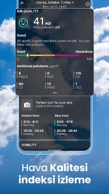 Hava durumu tahminlerinin belirsizliği, günlük planlarınızı şekillendirirken sıkça karşılaşılan bir sorundur. Ancak artık dışarıya bakma ihtiyacı duymadan, adeta pencerenizden dışarıyı seyreder gibi, gelecek hava olaylarına tam bir güvenle hazırlanabilirsiniz. Hayatınızı beklenmedik değişimlere karşı koruyan, her anınıza eşlik eden bu kapsamlı hava durumu deneyimi, programlarınızı her koşula göre hassasiyetle ayarlamanızı sağlar.