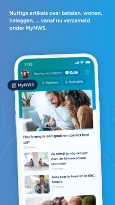 Ev sahibi olma yolculuğunuzda, mülkünüzü yenileme veya enerji verimli hale getirme planlarınızda KBC Mobile her adımda yanınızda. Setle aracılığıyla yenileme maliyetlerinizi ayrıntılı bir şekilde izleyebilir, Impact Us Today ile güneş paneli kurulumlarını hayata geçirebilirsiniz. Uygulama, kişiselleştirme seçenekleriyle deneyiminizi zenginleştirir; hesaplarınıza fotoğraf ekleyebilir, mahremiyetiniz için bakiyeleri gizleyebilir ve ana sayfanızı tamamen kendi tercihlerinize göre düzenleyebilirsiniz. Finansal konulara dair bilginizi artırmak isterseniz, uygulamadaki kısa, anlaşılır ve size özel hazırlanan makalelerle önemli finansal temalar hakkında bilgi edinin. Dijital asistanımız Kate, her türlü sorunuz için uygulamanın üst kısmındaki arama çubuğunda hazır bekler.