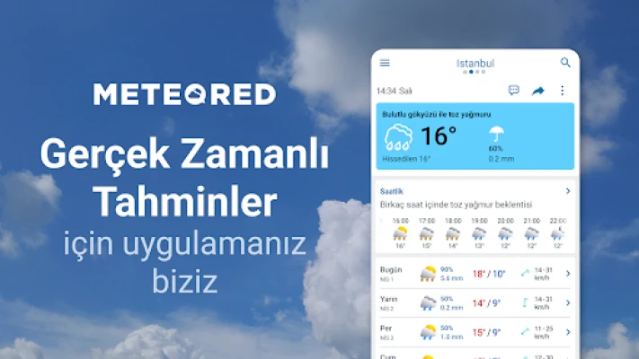 Meteored: Hava Durumu Radarı Türkiye, dünyanın en iyi modeline dayalı doğru ve detaylı hava tahmini sunar. Modern tasarımı ile hızlı erişim sağlarken, Yağmur Radarı, Kasırga Radarı ve 14 günlük tahminler gibi özelliklerle her zaman hazırlıklı olmanızı sağlar. Meteoroloji uzmanlığımızla hava durumu sürprizlerine son verin.