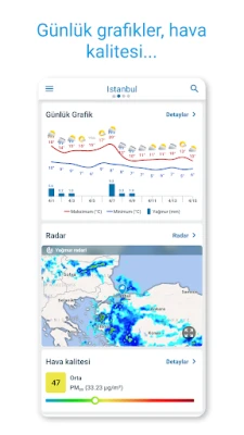 Bu kapsamlı hava durumu çözümü, sadece anlık bilgileri değil, aynı zamanda gelecek iki haftalık detaylı tahminleri de parmaklarınızın ucuna getiriyor. Bir güne tıkladığınızda atmosfer basıncından rüzgar hızına, hissedilen sıcaklıktan ayın evrelerine kadar her türlü saatlik veriyi keşfedin. Bölgenizdeki hava kalitesini ve polen yoğunluğunu takip ederek dış aktivitelerinizi daha bilinçli planlayın. Cihazınızı çevirerek sıcaklık değişim grafiğini anında görüntüleyin. Ayrıca, 6 günlük animasyonlu hava haritaları sayesinde yağış, sıcaklık veya hava kalitesi gibi katmanları gerçek zamanlı izleyebilir, canlı yağmur radarımız ve fırtına izleyicimizle olası tehlikelere karşı hazırlıklı olabilirsiniz. NOAA'dan alınan son birkaç saatlik radar ve uydu görüntüleri ile gökyüzündeki değişimleri görsel bir şölenle takip edin.