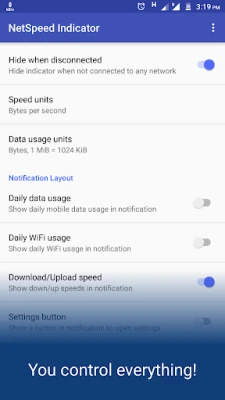 Kullanıcı deneyimi düşünülerek tasarlanmış olan bu özellik, gün boyunca ağ kullanımınızı ve hızınızı sürekli izlemenize olanak tanırken, asla dikkat dağıtmaz. Bildirim alanı, minimum yer kaplayacak ve görünümünüzü engellemeyecek şekilde özenle tasarlanmış, minimal bir bildirim sunar. Esnek yapısıyla, göstergenin durum çubuğunda nerede görüneceği, kilit ekranında gösterilip gösterilmeyeceği veya hız biriminin (örneğin kBps veya kbps) ne olacağı gibi neredeyse her şeyi kişiselleştirebilirsiniz. Bu detaylı kontrol, uygulamayı kendi tercihlerinize göre şekillendirmenizi sağlar.