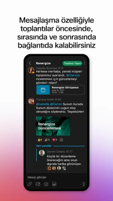 Webex Uygulaması, küresel iş dünyasının dinamik hızına ayak uydurarak, nerede olursanız olun kesintisiz ve anlaşılır bir iletişim deneyimi sunar. Yüz yirmiden fazla dildeki gerçek zamanlı çeviri yeteneği sayesinde dil bariyerlerini ortadan kaldırırken, arka plan gürültüsü engelleme özelliği her görüşmenizin kristal netliğinde geçmesini sağlar. Kişiselleştirilebilir toplantı düzenleri ile her katılımcının ihtiyacına göre adapte olan sanal toplantı odaları oluşturarak verimliliği en üst düzeye çıkarabilirsiniz.